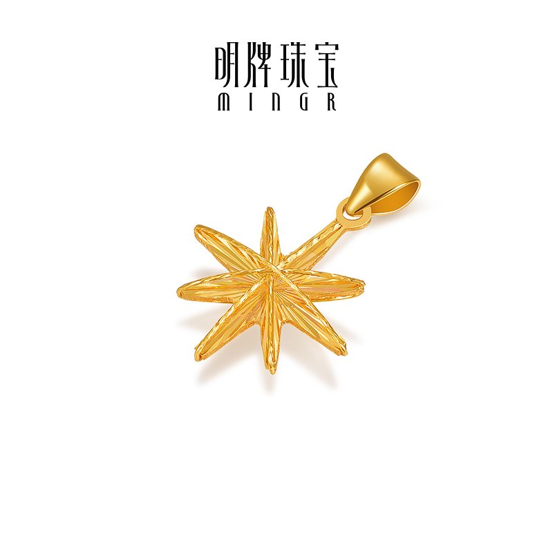 明牌珠宝18K金八芒星吊坠 彩金K黄色拉丝星星项坠挂件CSC0113
