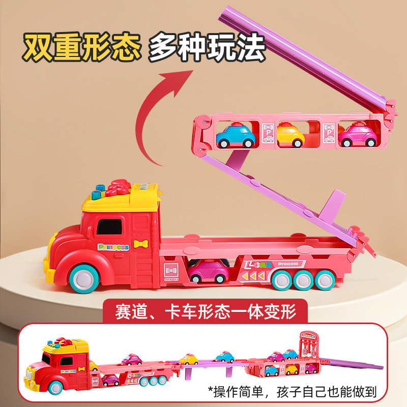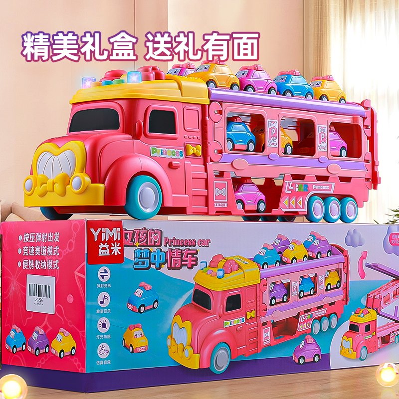 儿童益智女孩收纳货柜变形轨道弹射汽车8惯性7玩具3到6岁生日礼物