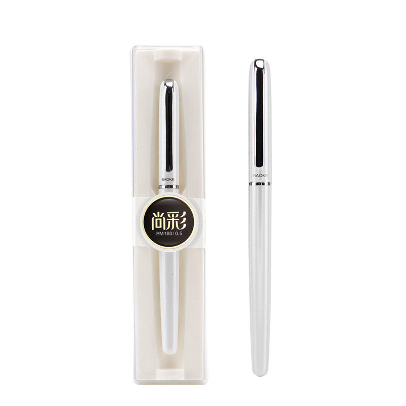 宝克PM180金属中性笔0.5mm芯 简约金属子弹头黑红色走珠重手感商务高档办公签字笔圆珠水性学生考试练字黑笔