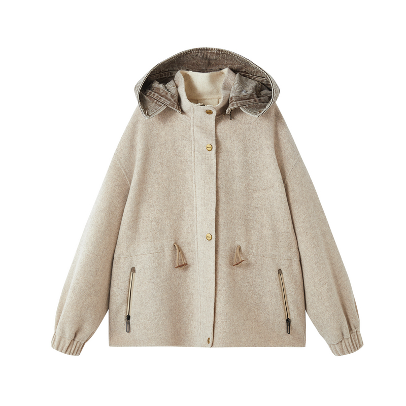 谜底羊毛双面呢大衣长袖2025冬新品猎装廓形抽绳收腰女254MD1724