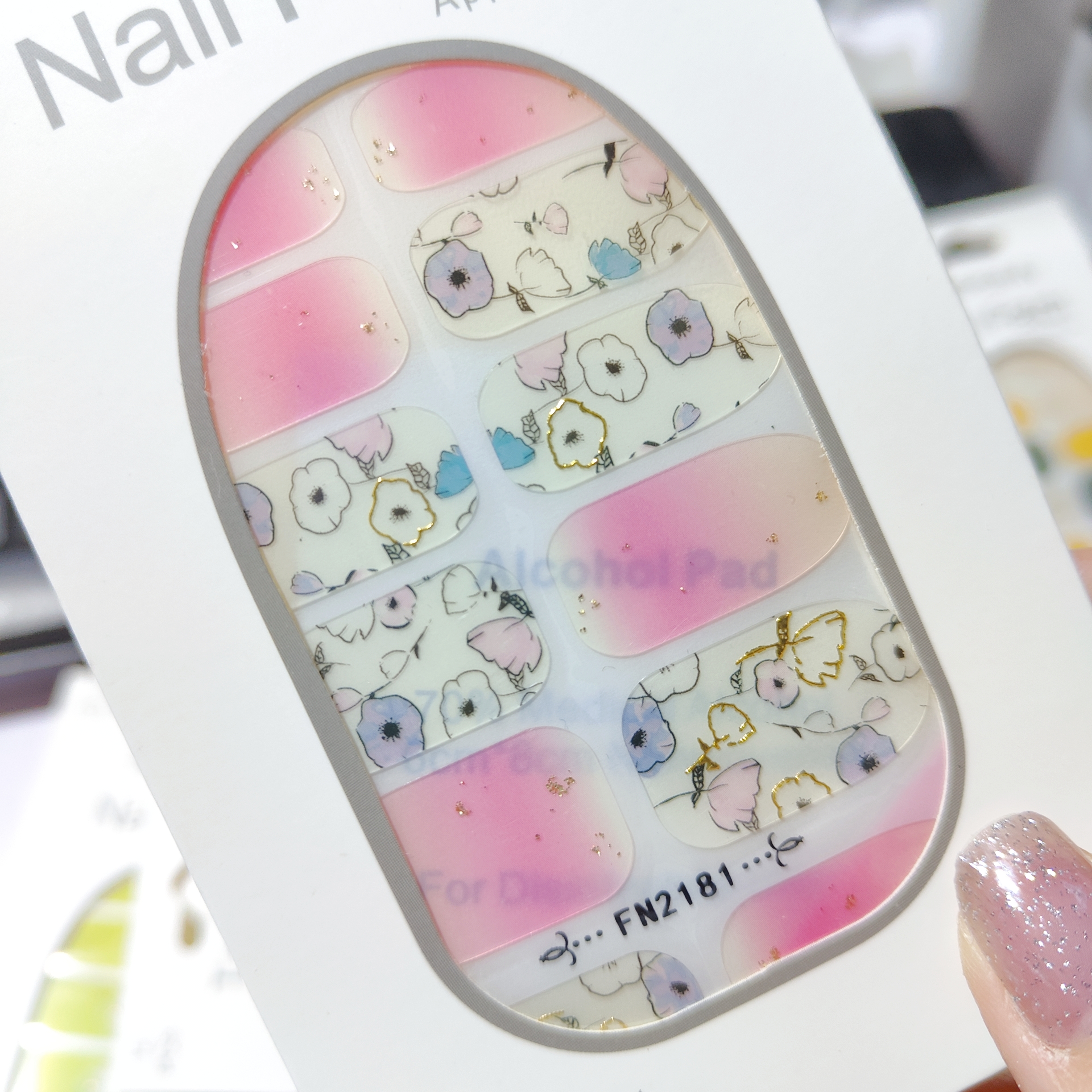 美甲全贴12贴套装梦幻夏天整甲贴纸花朵樱桃爱心晕染几何蜜蜂可爱