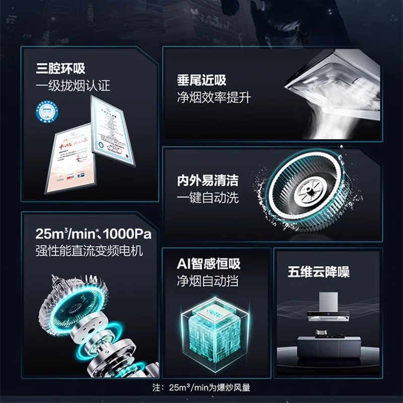 新品华帝油烟机家用跨界三腔S12+75B抽油烟机燃气灶套餐烟灶套装