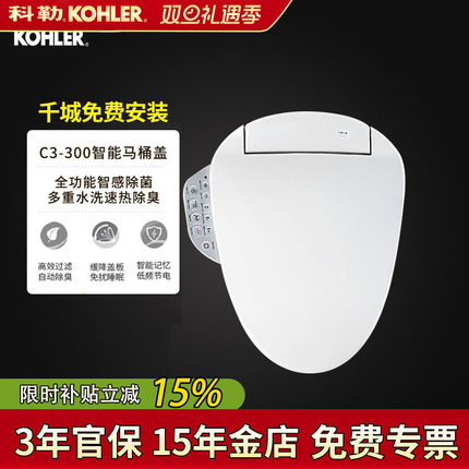 科勒智能马桶盖板储热式坐便器自动加热家用洁身器K-23360T坐便盖