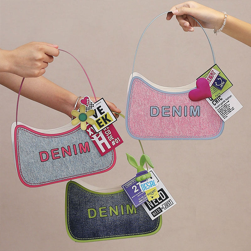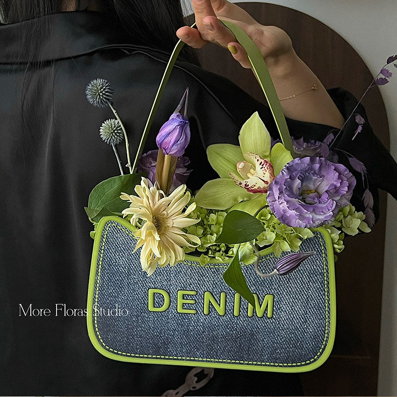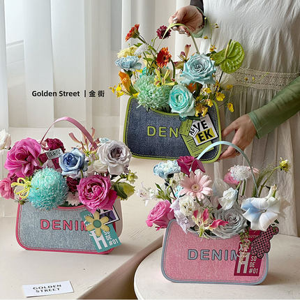 丹宁牛仔包复古鲜花插花礼盒牛皮