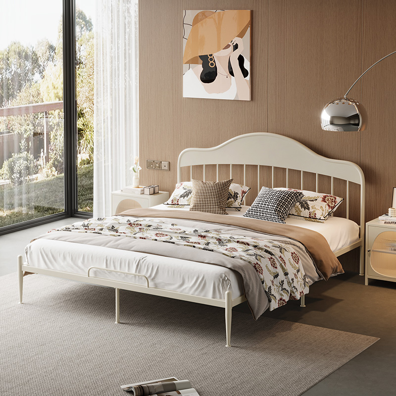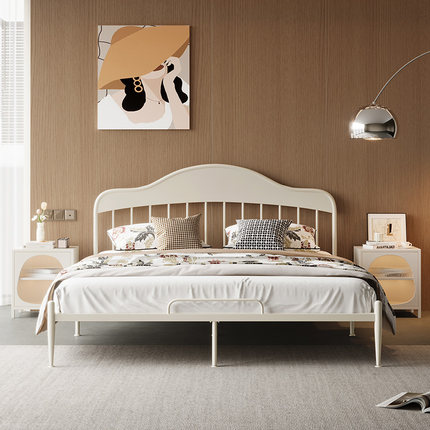 奶油风轻奢铁艺床1.5米1.8米卧室铁床双人床女孩房公主风儿童床架