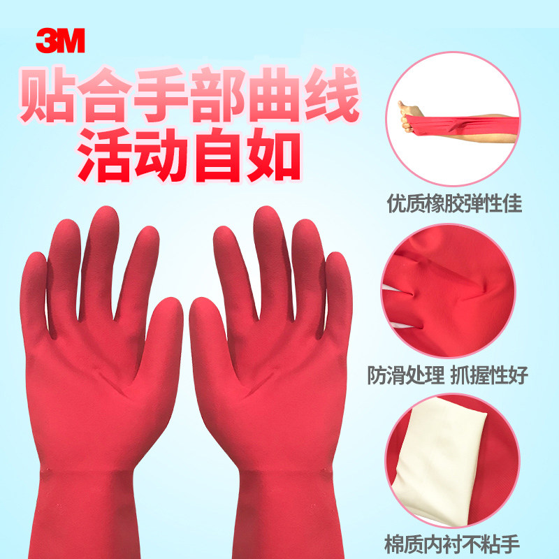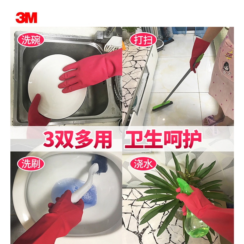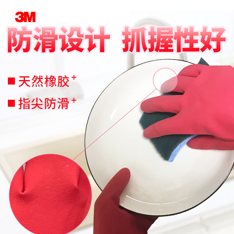 3M思高橡胶手套厨房家务清洁洗碗洗衣手套女男防水防滑耐用型乳胶