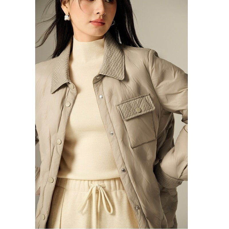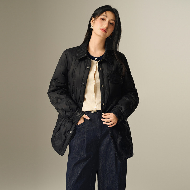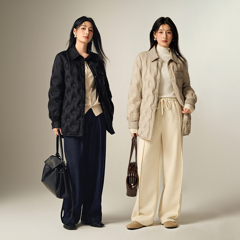 Basic House/百家好翻领轻薄羽绒服冬新款保暖纯色短款白鸭绒外套