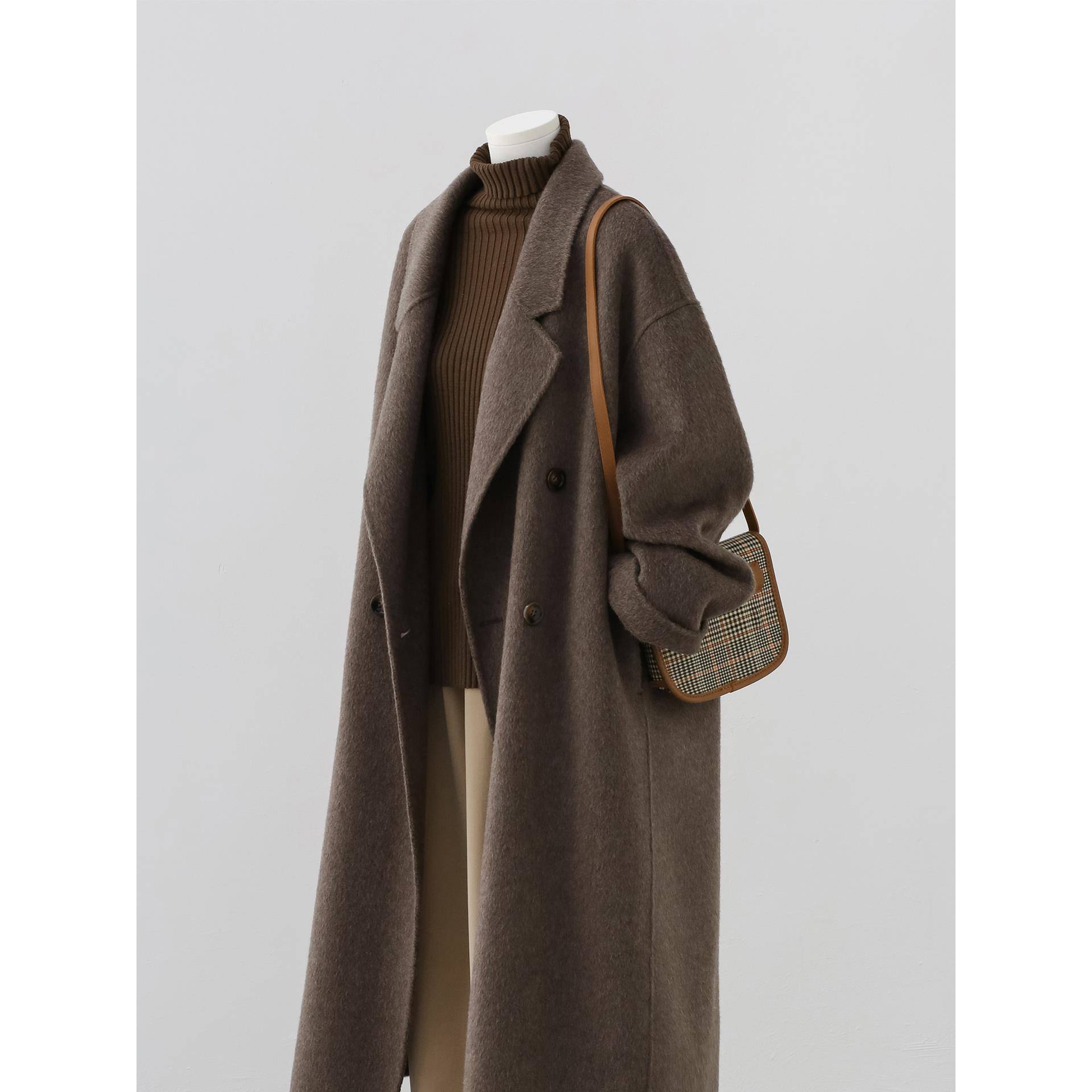 双面羊绒大衣女2025新款秋冬中长款韩系宽松高级感棕色羊毛呢外套
