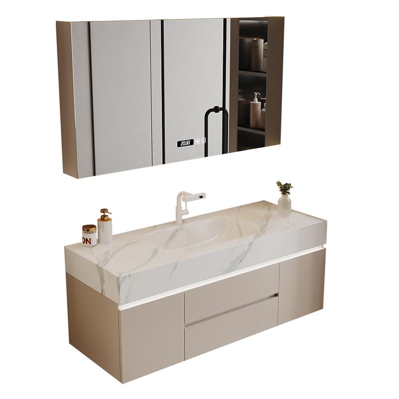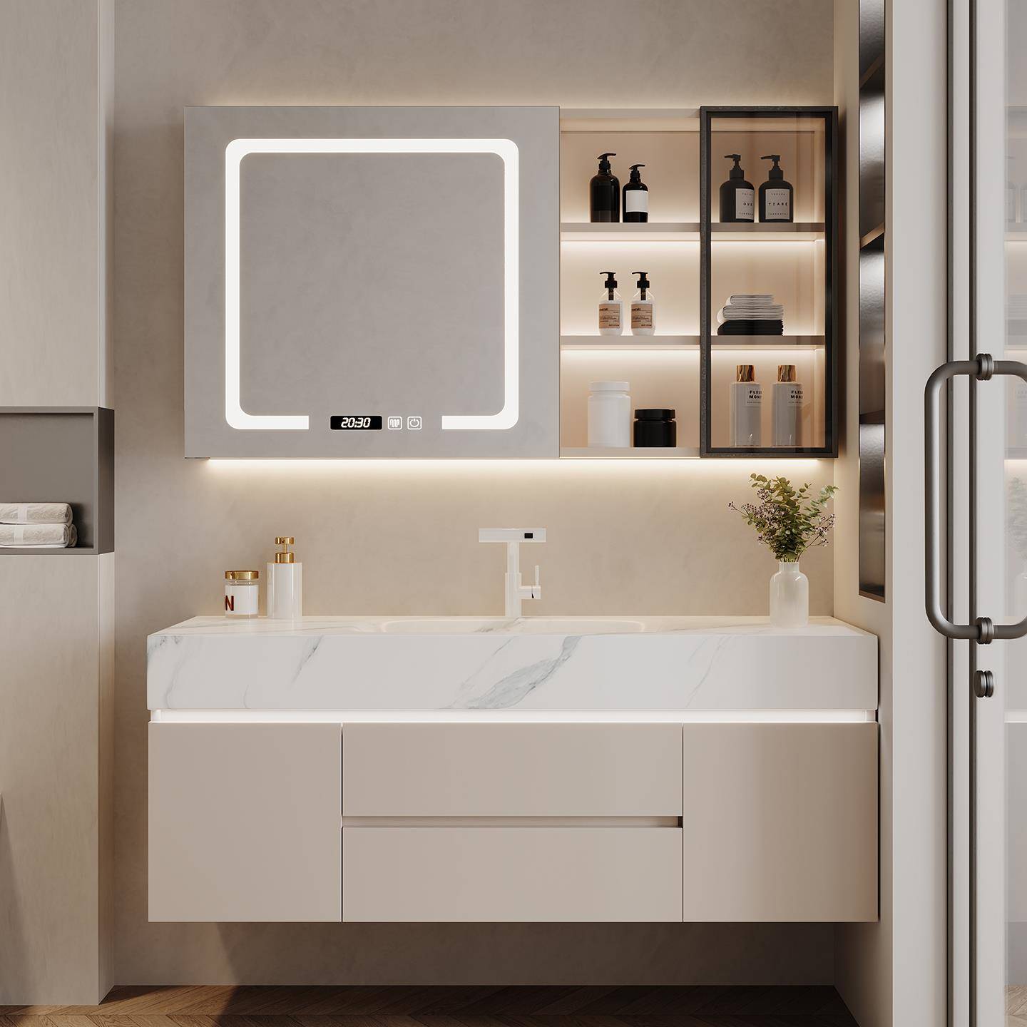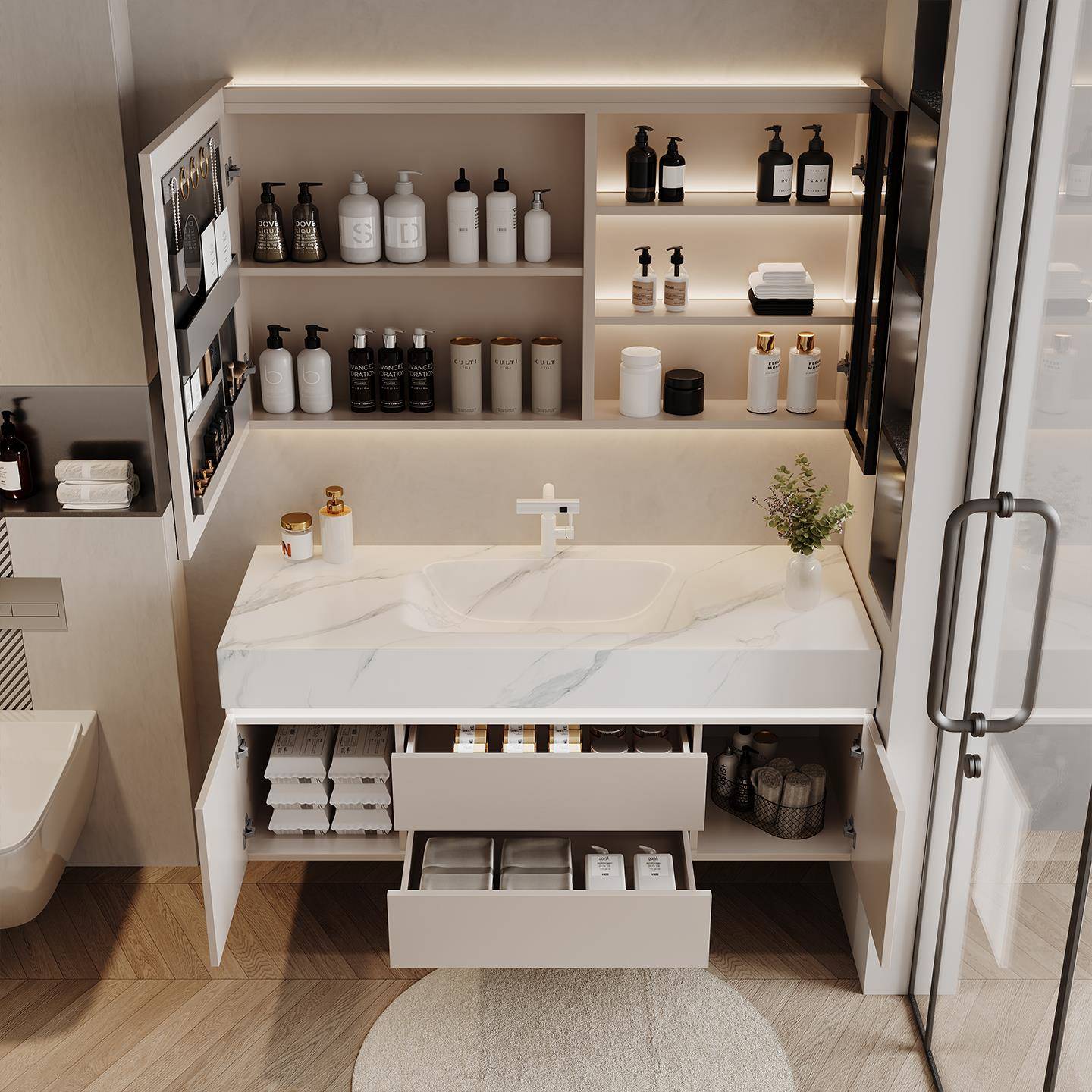 新款奶油风岩板热弯一体盆浴室柜组合卫生间洗手池洗脸盆柜洗漱台