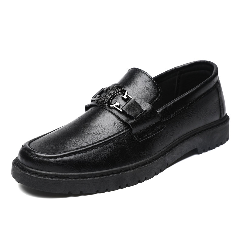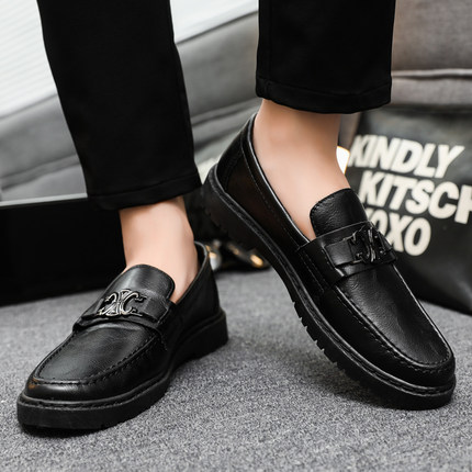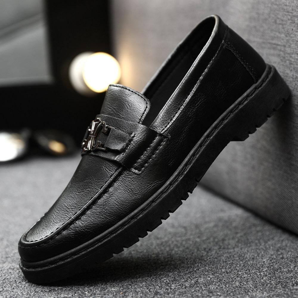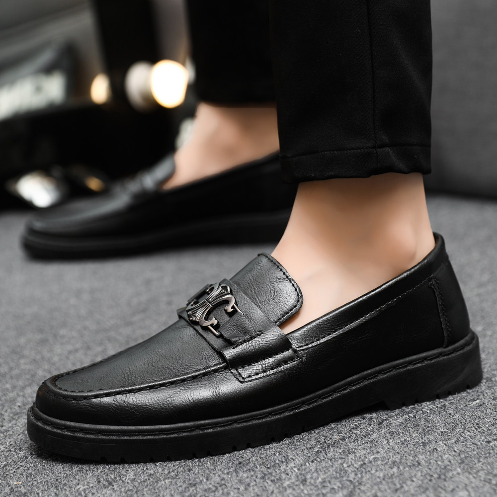 冬季新款男鞋低帮套脚黑色休闲皮鞋韩版潮流豆豆鞋软底防滑乐福鞋