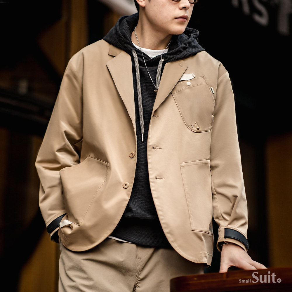 马登工装 美式休闲平驳领小西装夹克多口袋机能宽松西服外套男春
