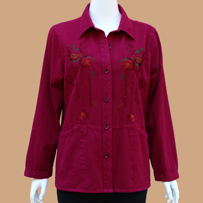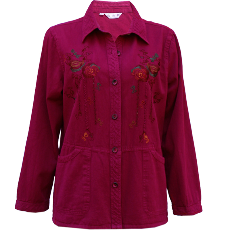 中老年女装纯棉长袖衬衫春装大码妈妈婆婆衬衣绣花秋季衬衫上衣夏