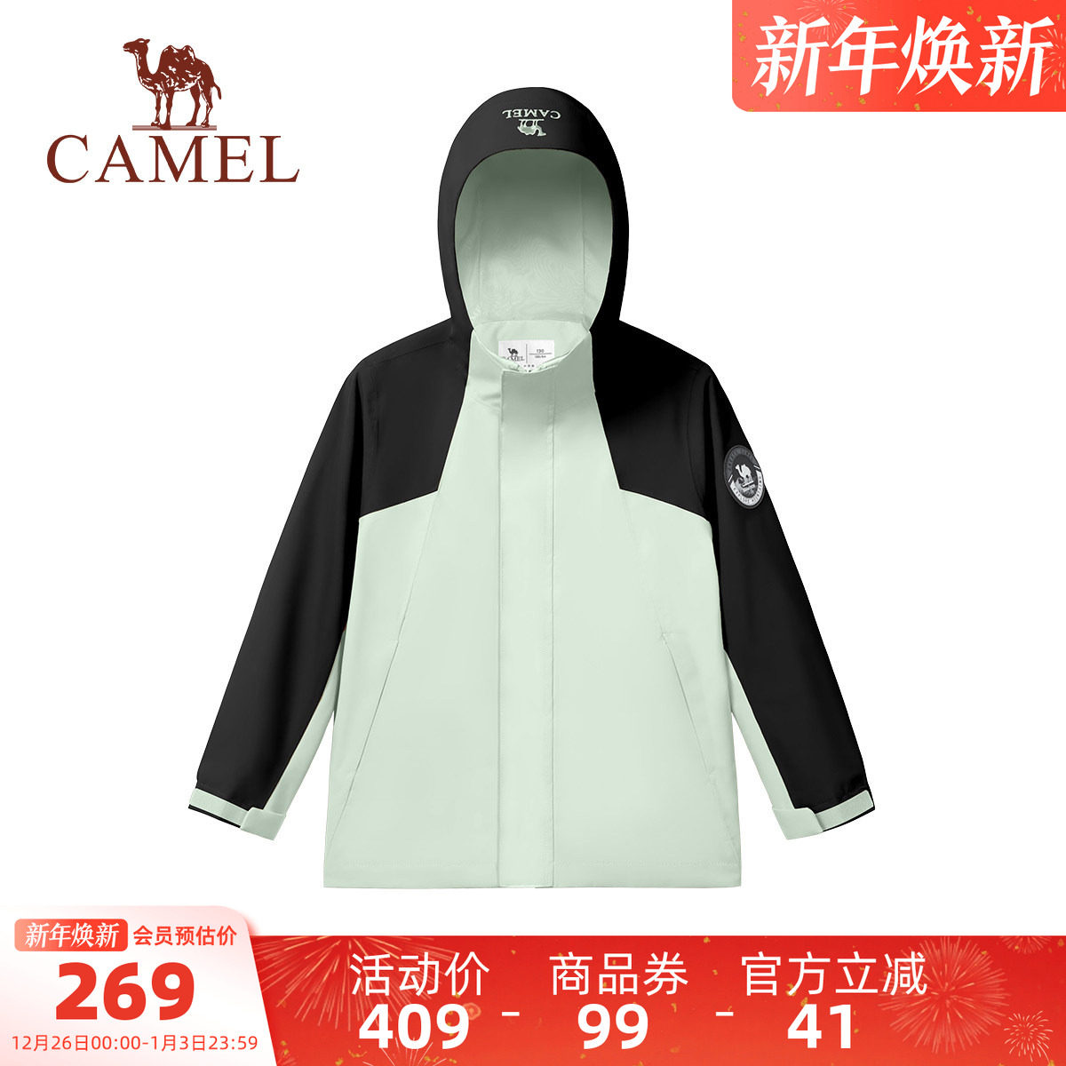 小骆驼儿童冲锋衣2026新款连帽防风防水大童户外运动服男女童外套