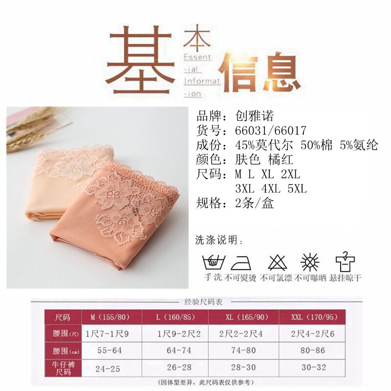 促销超值创雅诺女士内裤加大码肥大莫代尔棉网纱蕾丝绣花时尚中腰