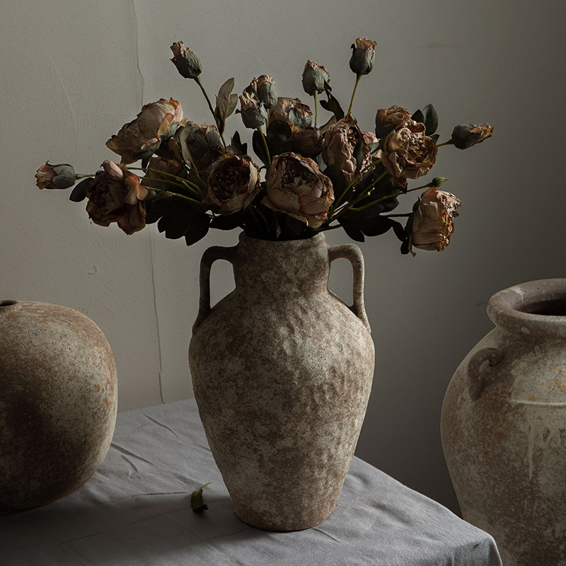 景德镇复古陶瓷花瓶侘寂风手工粗陶罐陶器大花盆酒店民宿装饰摆件