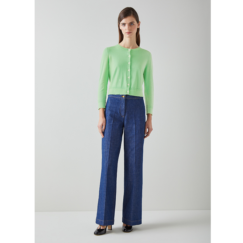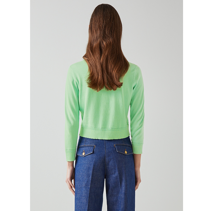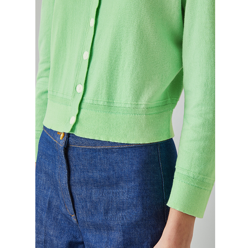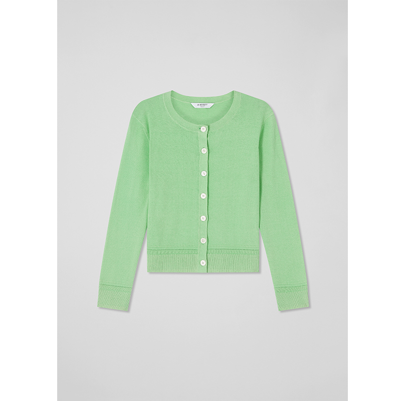 lkbennett薄荷绿色纯棉短款针织开衫女春夏新款长袖薄外搭