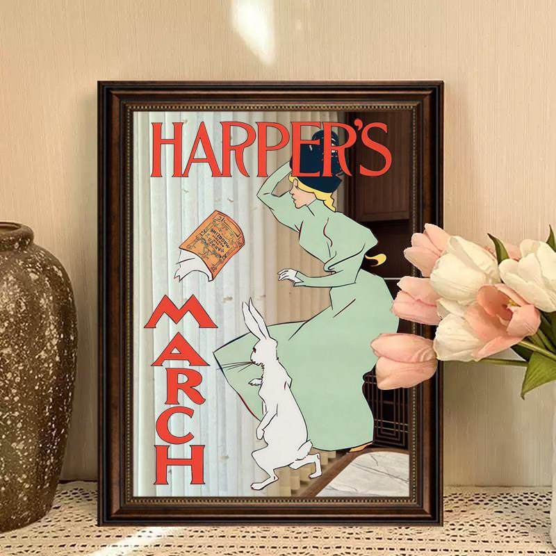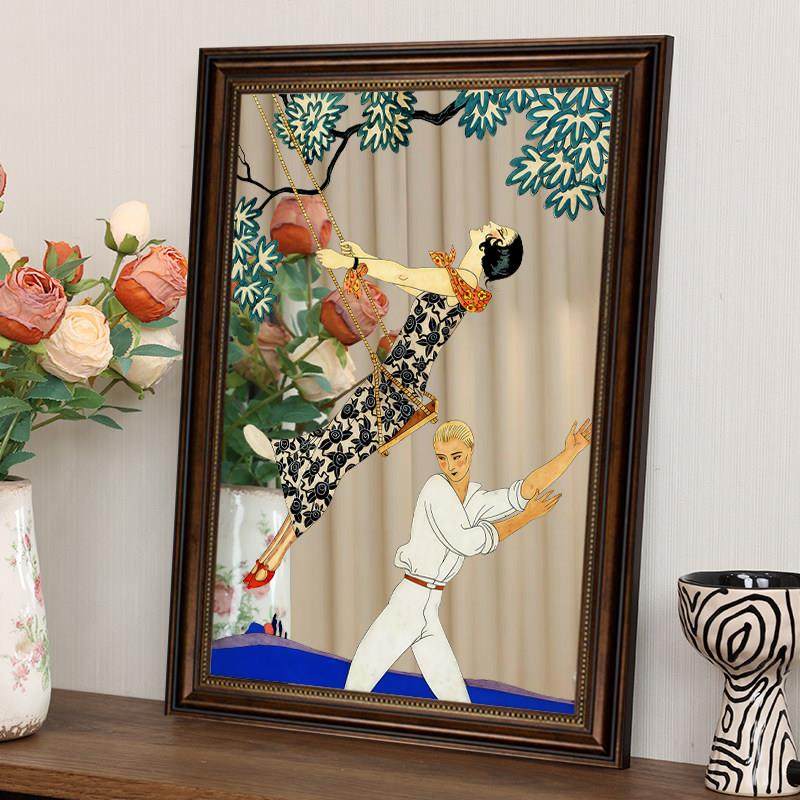 法式镜面创意装饰画美式复古咖啡厅壁画客厅卧室小众艺术人物挂画
