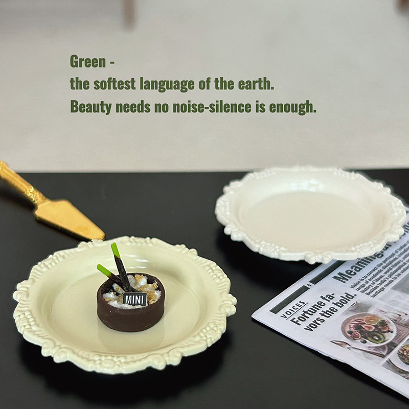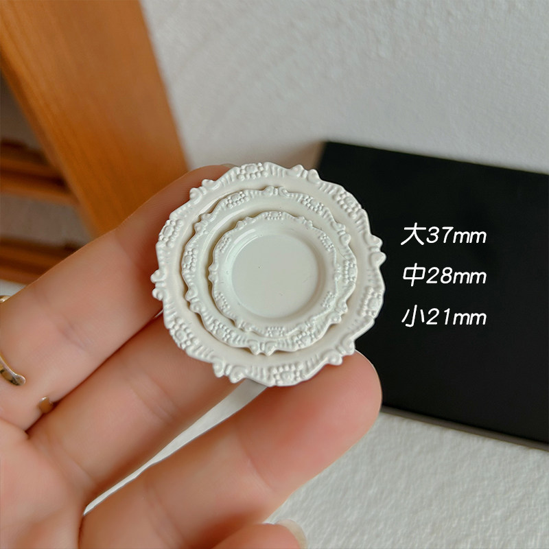 ob11微缩餐碟玩具模型娃娃屋配件复古雕花托盘碟迷你装饰摆件D593