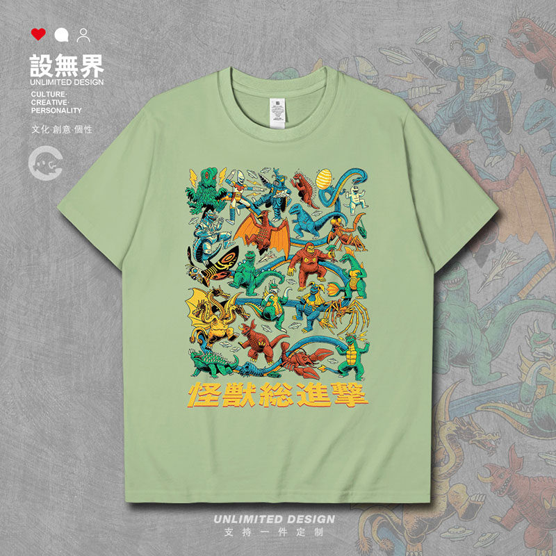 日系哥斯拉怪兽家族总进击卡通漫画短袖T恤男女短t潮0017设 无界