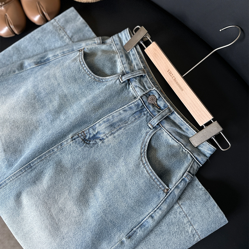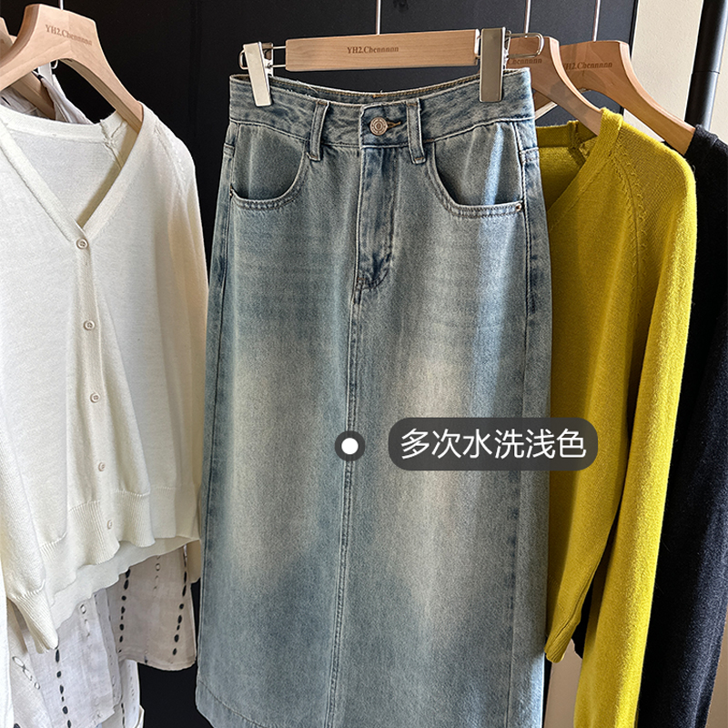 YH2.Chennnnn 多次水洗浅色遮胯显瘦开叉牛仔半身裙女高腰中长裙