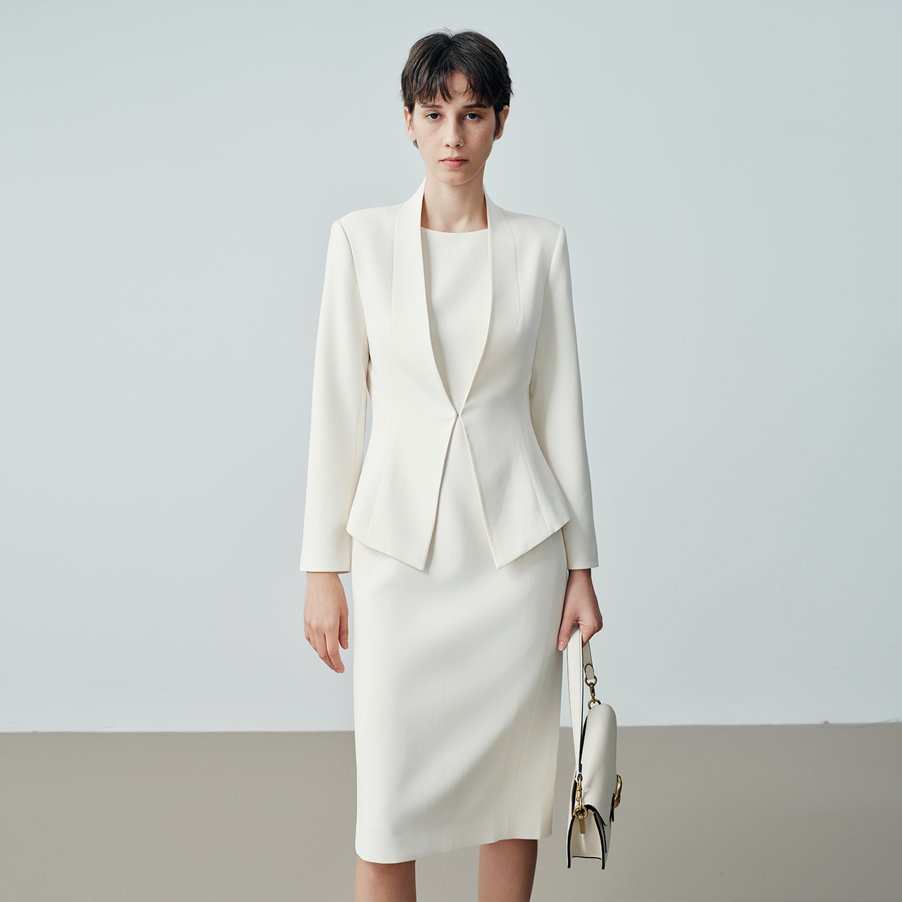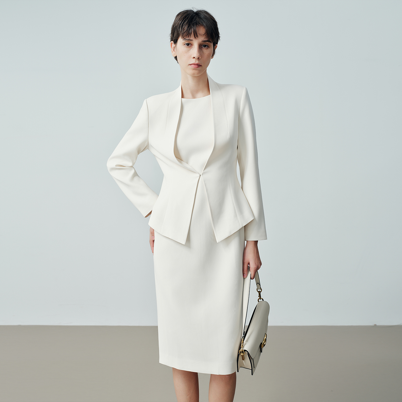 匡册"高端商务系列"三醋酸无领西装套装女抗皱易打理极简通勤外套