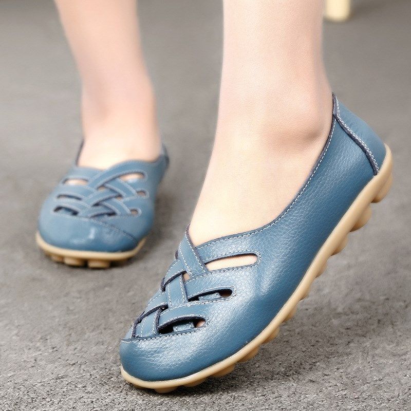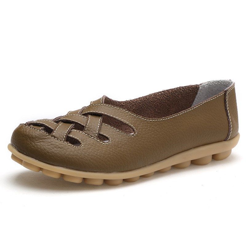 2025夏季镂空二层牛皮中老年妈妈鞋女单鞋软底坡跟大码休闲鞋