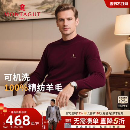 [加厚可机洗羊毛]梦特娇纯羊毛衫男士秋冬圆领精纺毛T恤针织毛衣J
