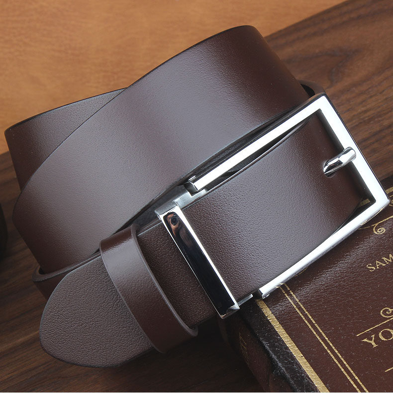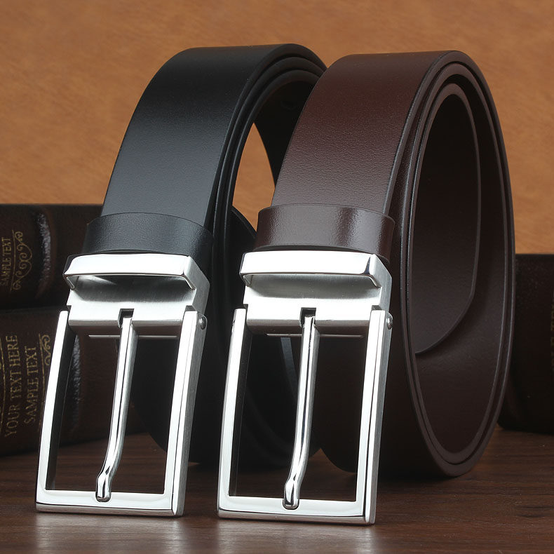 304不锈钢虎牙针扣腰带男真皮头层牛皮防过敏商务正装穿搭款皮带