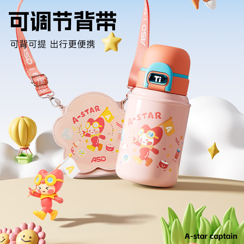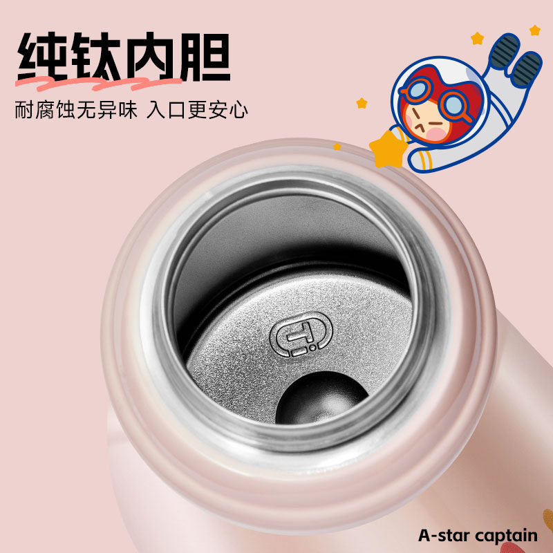 爱仕达钛杯儿童保温杯学生上学专用水杯女生高颜值大容量吸管杯子