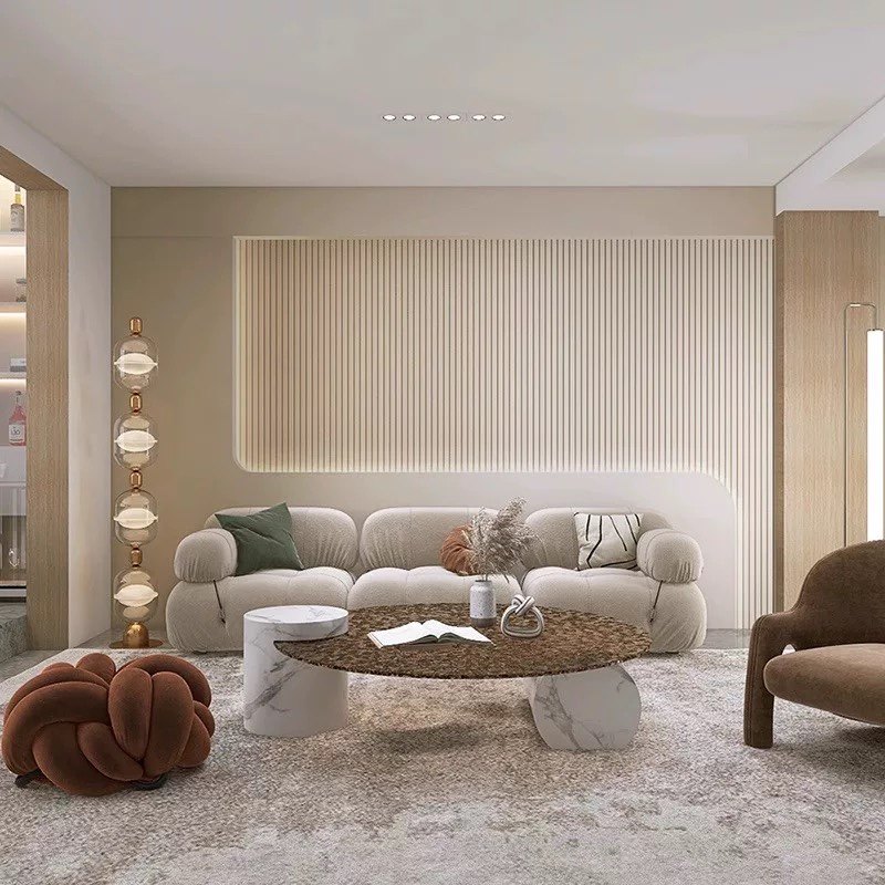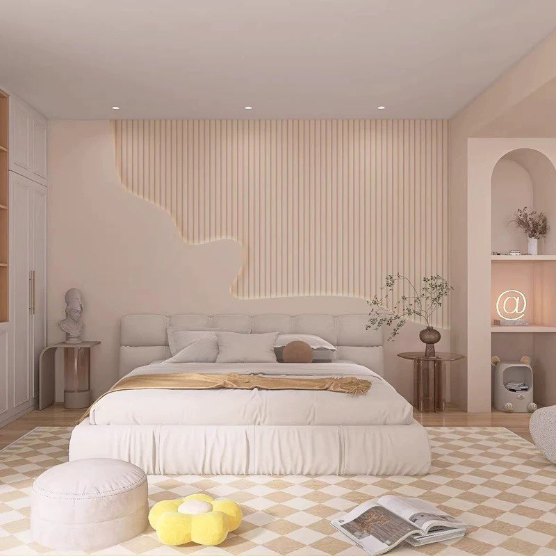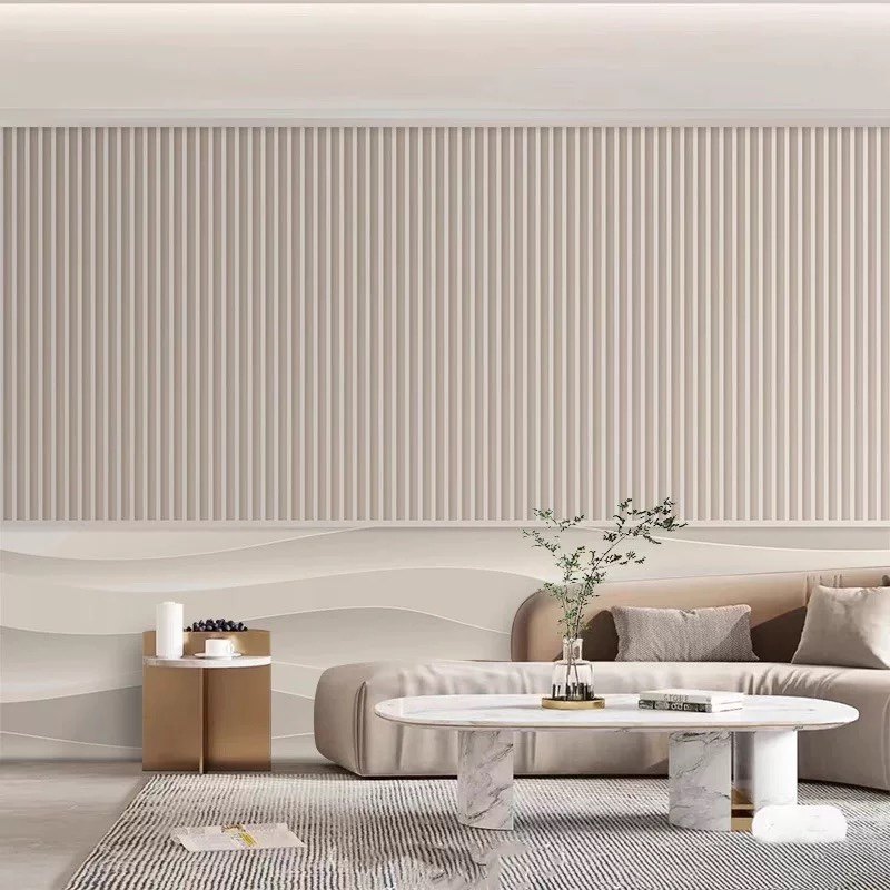 轻奢法式奶油风墙纸客厅卧室床头背景墙壁纸美容院高级感格栅壁布