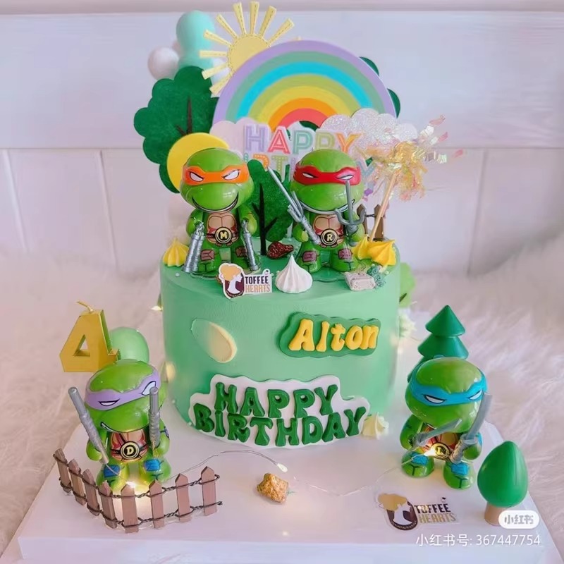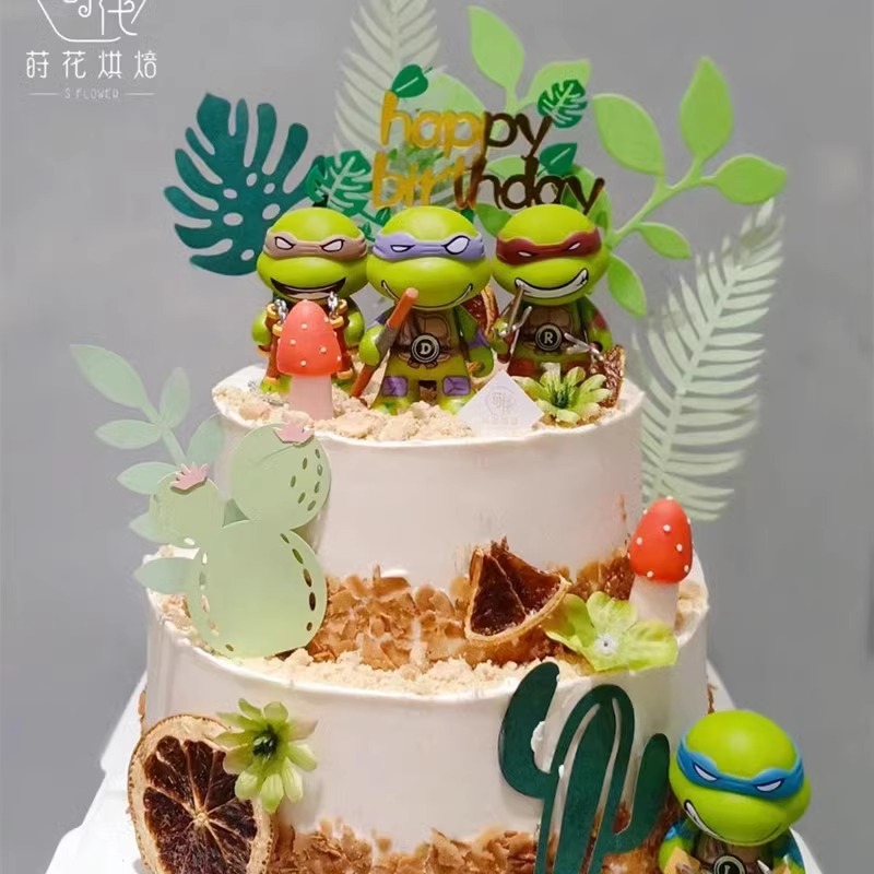 忍者神龟蛋糕装饰摆件创意乌龟公仔手办儿童男孩王子生日烘焙配件