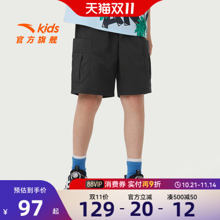 长尾豹马修联名款安踏儿童男大童五分裤2025夏季新款宽松速干裤子
