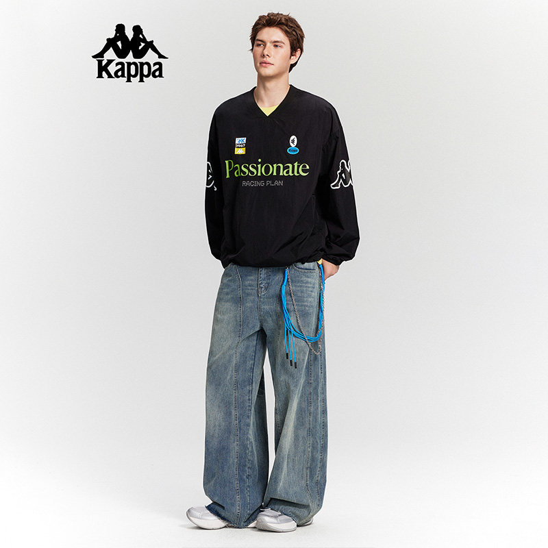Kappa卡帕男装女装2025秋季新款V领美式复古梭织卫衣KPCJBTG90
