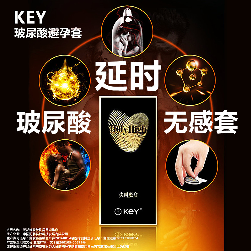 key安全套玻尿酸超薄延时001避孕套超薄裸入隐形男用尖叫保险套yw