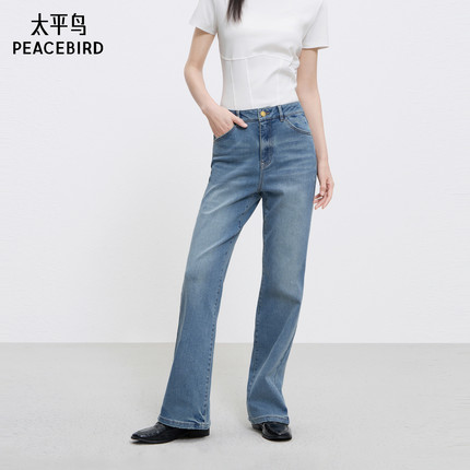 太平鸟高腰直筒牛仔裤2025春季新款窄版小直筒烟管裤法棍牛仔裤*