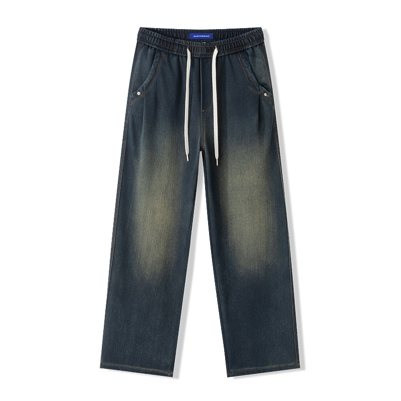 马克华菲休闲裤男2025新款秋冬季潮牌美式复古水洗抽绳针织阔腿裤