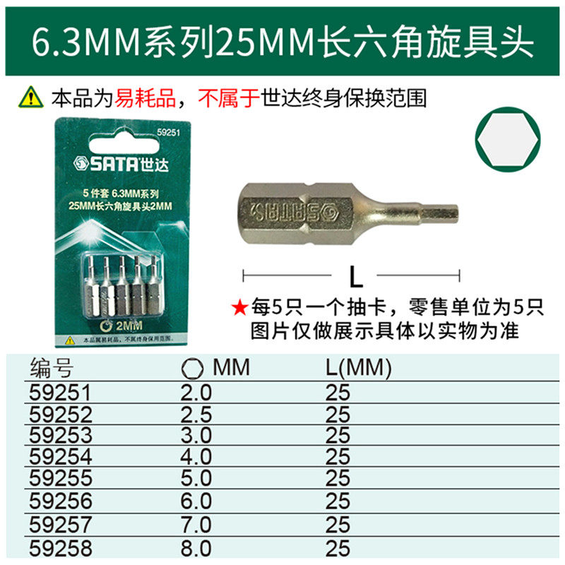 世达内六角电批头1/4风批咀电动电钻螺丝刀头S2起子头批嘴长25mm