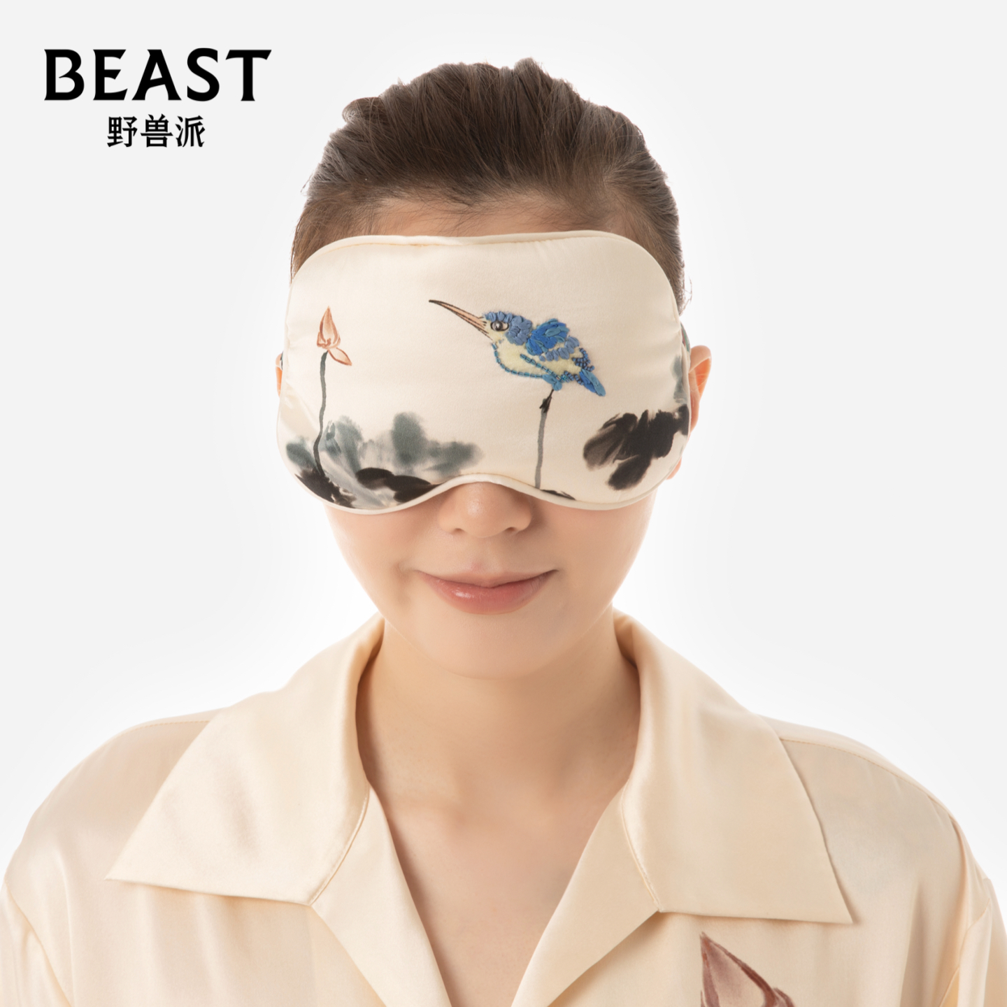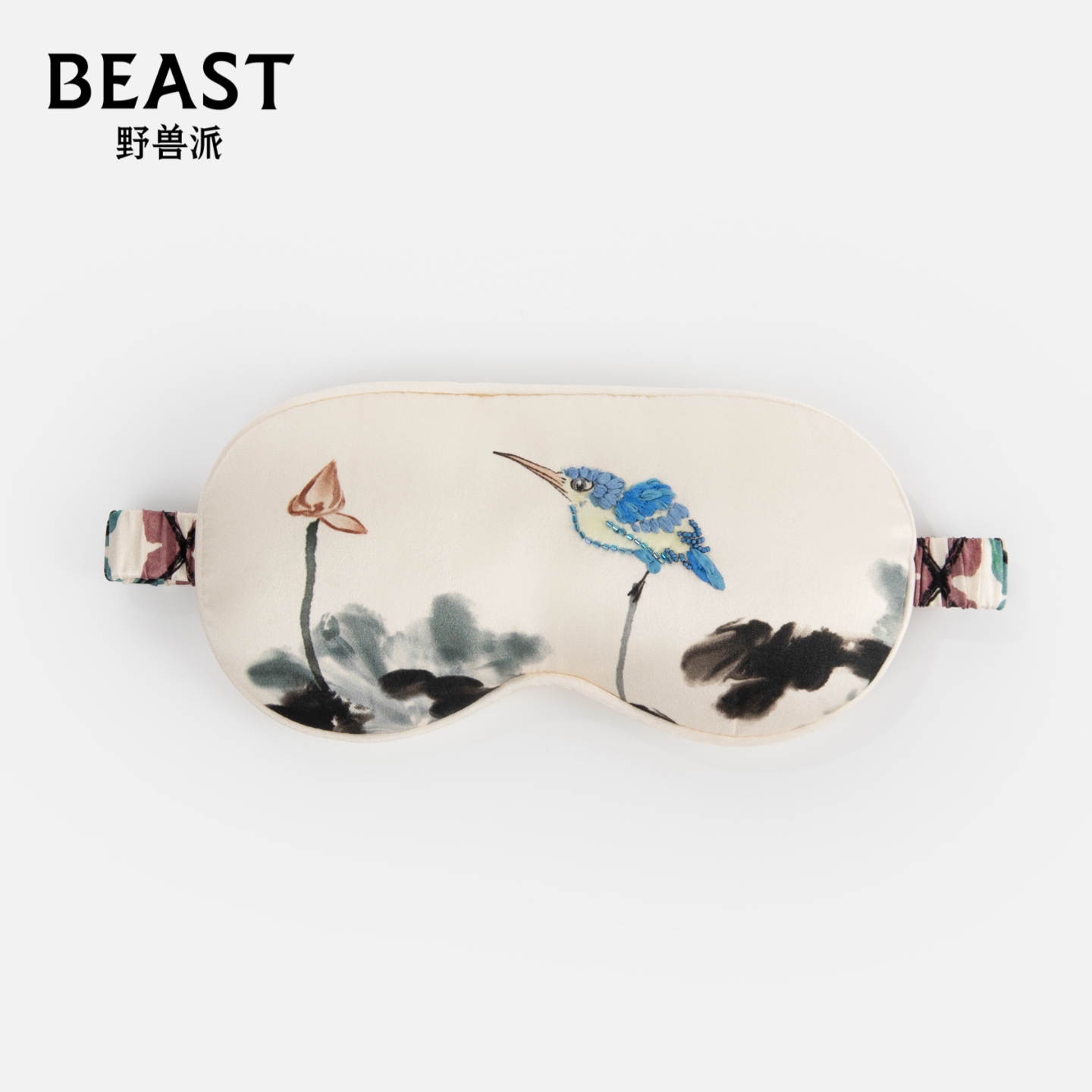 野兽派荷花翠鸟22姆米真丝印花手工丝带绣眼罩生日纪念日伴手礼物