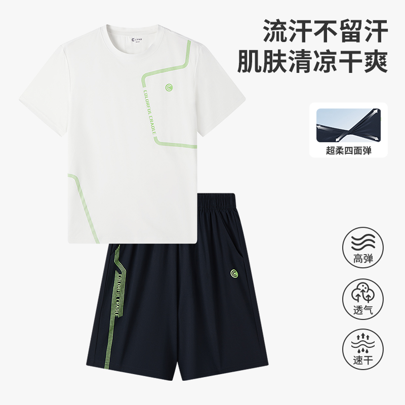七彩摇篮男童夏季速干套装儿童短袖夏季女童t恤2025新款运动套装