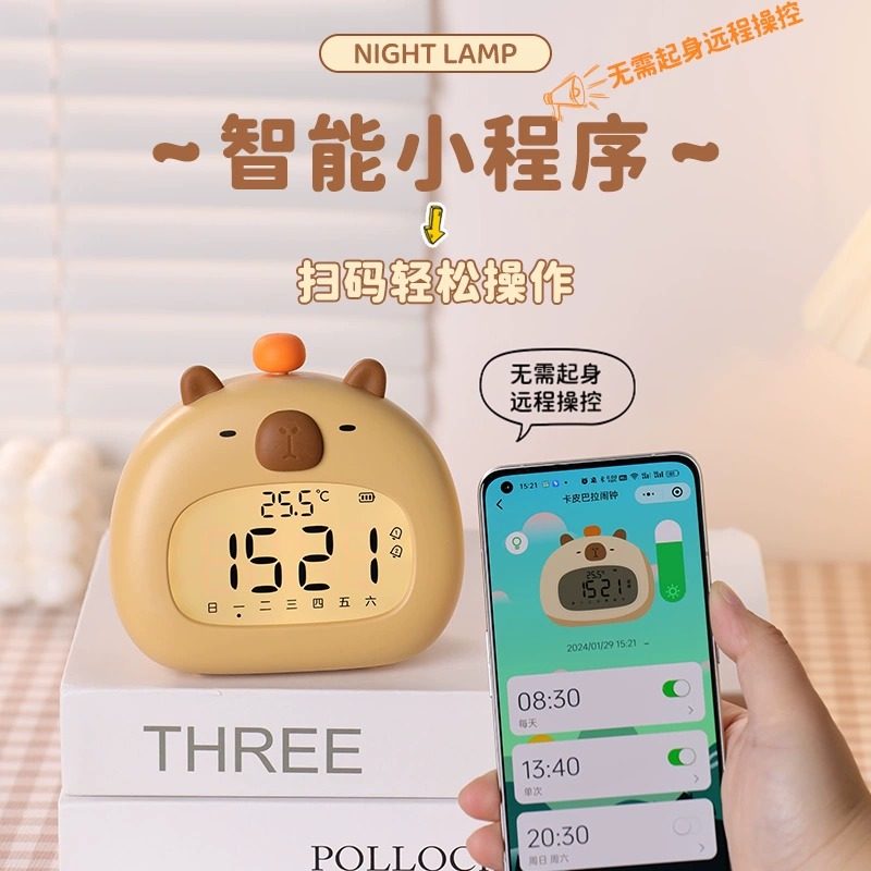 卡皮巴拉智能闹钟2025学生专用儿童男孩起床神器倒计时电子时钟