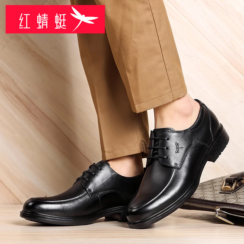 红蜻蜓男鞋真皮正装皮鞋头层牛皮系带秋季男士商务休闲鞋圆头透气