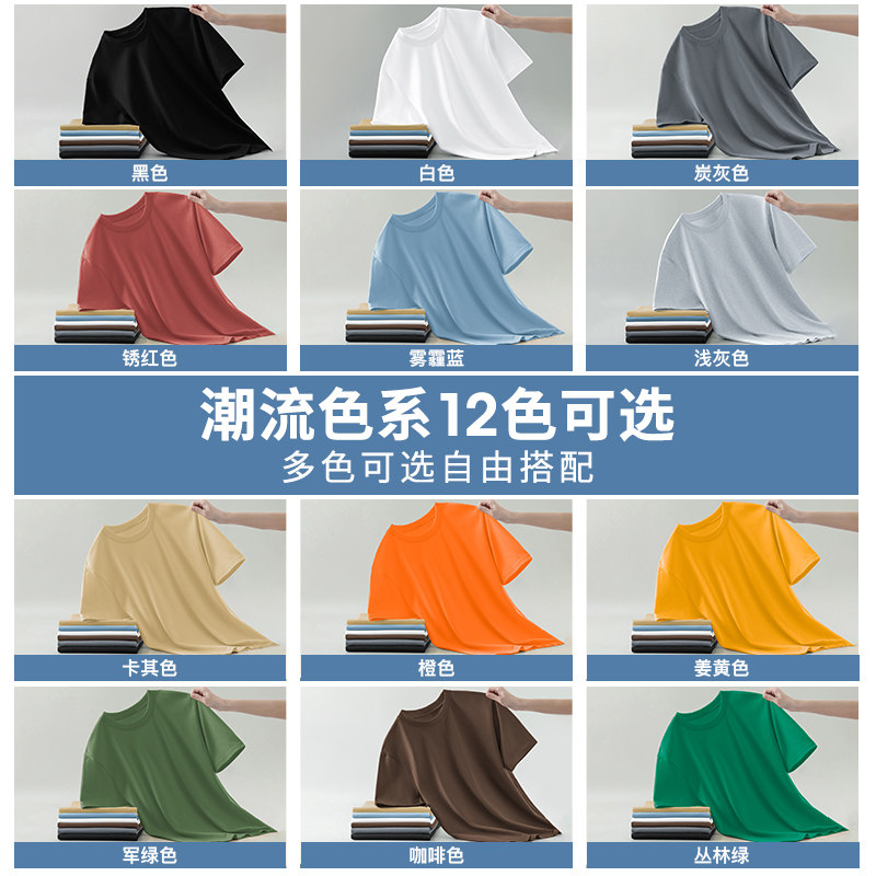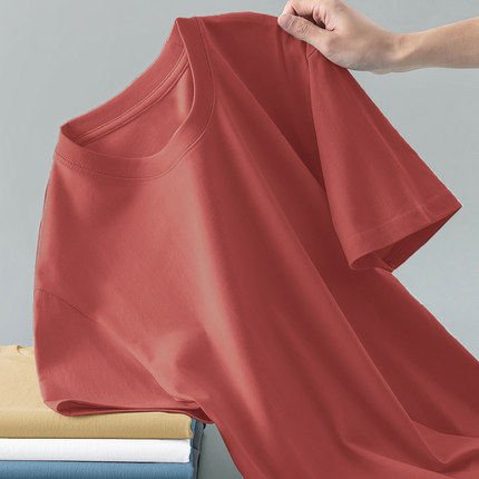100%纯棉短袖t恤男圆领夏季宽松纯色上衣服打底衫全棉半袖体恤衫