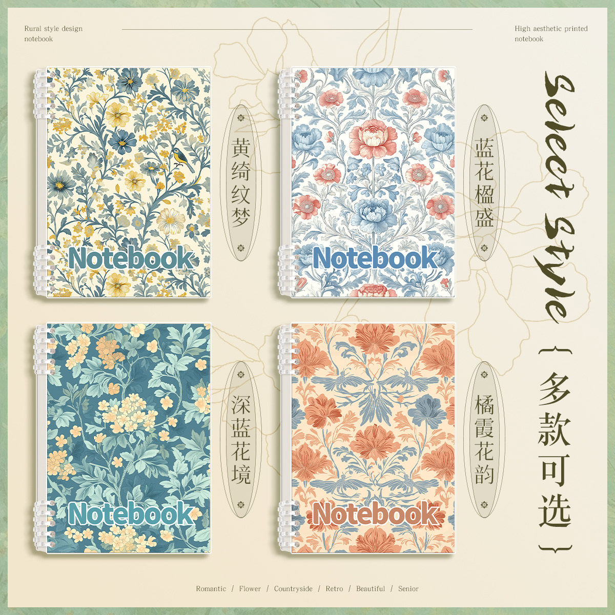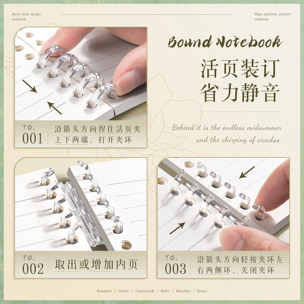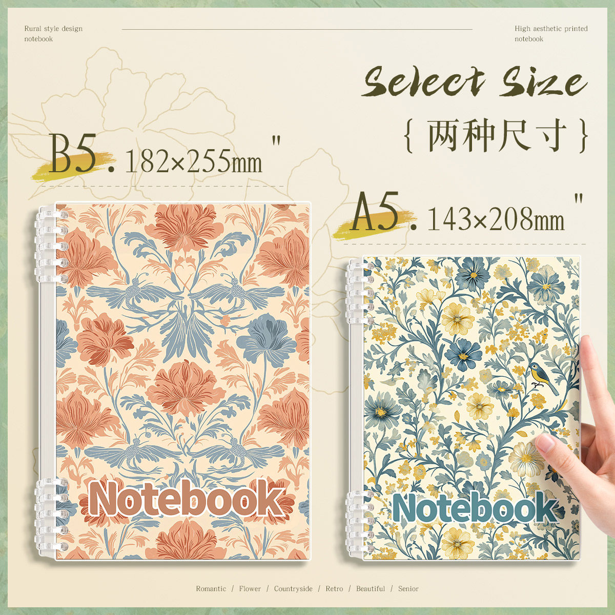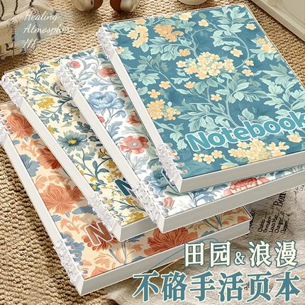复古印花B5活页本不硌手笔记本本子可拆卸扣环线圈本a5初高中生专用记事本大学生考研用高颜值日记本加厚记录