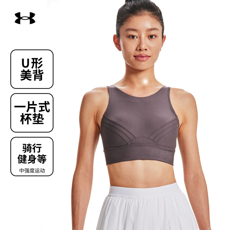 安德玛UA官方女子运动背心含胸垫套头运动Bra中强度弹性瑜伽内衣