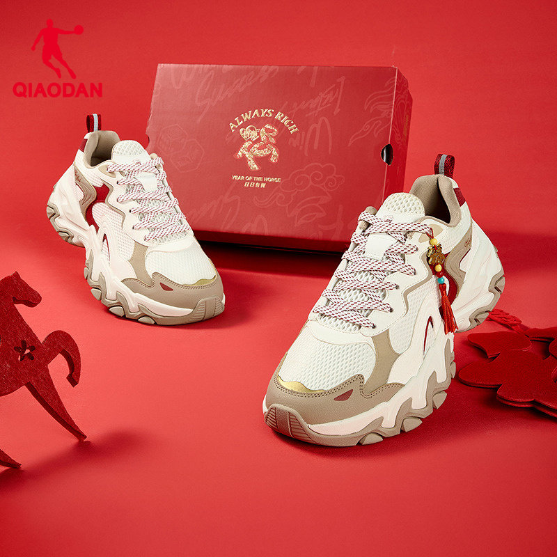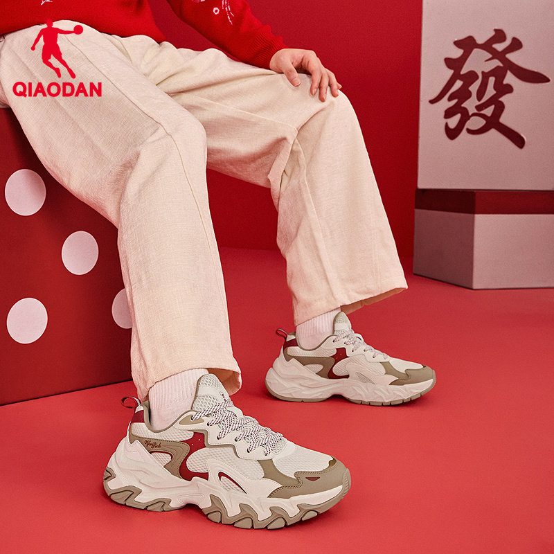 乔丹红色新年款运动鞋男老爹鞋2026春季新款厚底增高休闲鞋马年鞋
