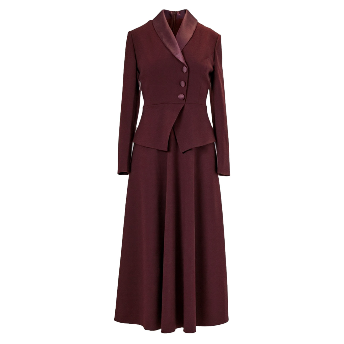 喜婆婆婚宴装连衣裙女2025冬季新款时尚气质酒红色修身显瘦礼服裙