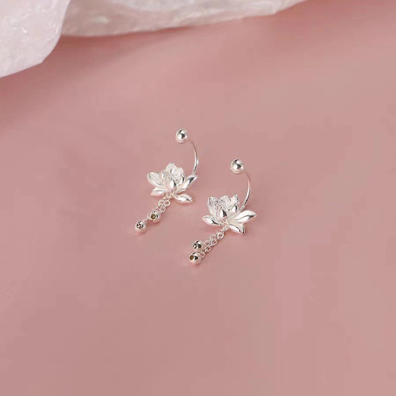 S999纯银莲花流苏耳钉女款