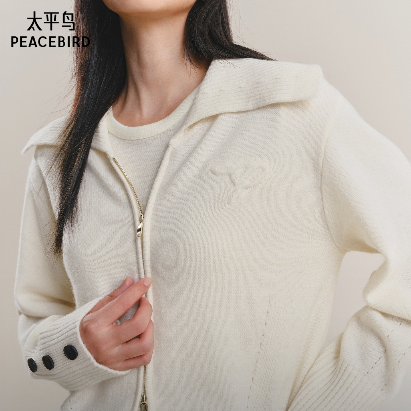 【商场同款】太平鸟摩卡100%全羊毛双拉链翻领针织开衫A1EDF4442
