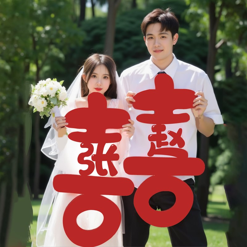 定制超大姓氏喜字结婚专用客厅布置装饰超大号囍字门贴婚庆拍照用