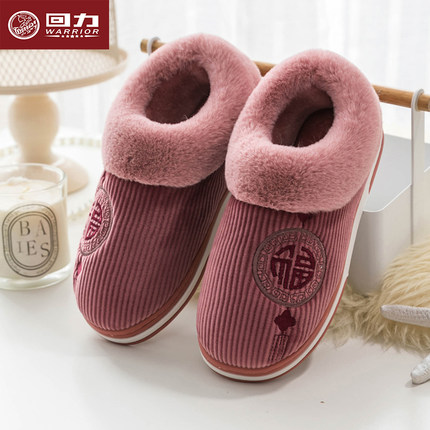 回力加绒保暖厚底防滑包跟棉拖鞋